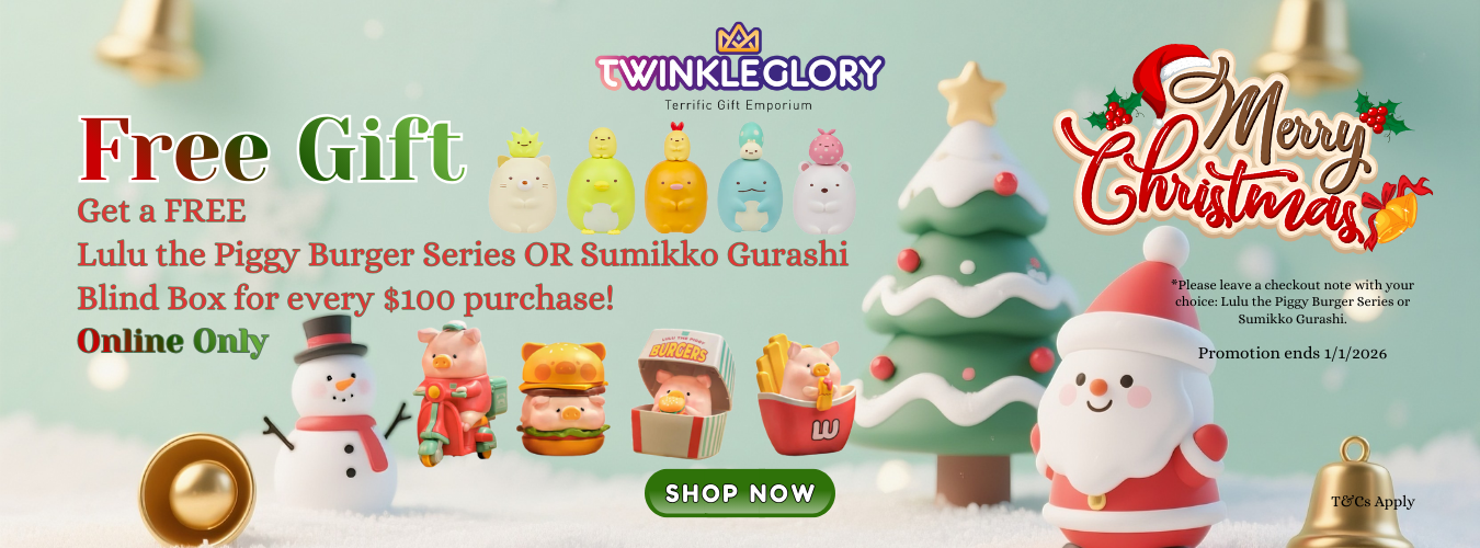 🎁 Free Lulu Piggy Burger OR Sumikko Gurashi Blind Box with every $100 spend — Online Only! For Christmas, order by 19/12/2025 (NSW,VIC), and 16/12/2025 (WA,NT, TAS).