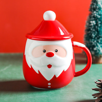 Christmas Santa Claus Ceramic Mug With Lid And Spoon