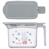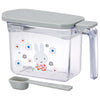 - Lid, button, leveling plate, spoon: Polypropylene (heat resistant up to 140 degrees)