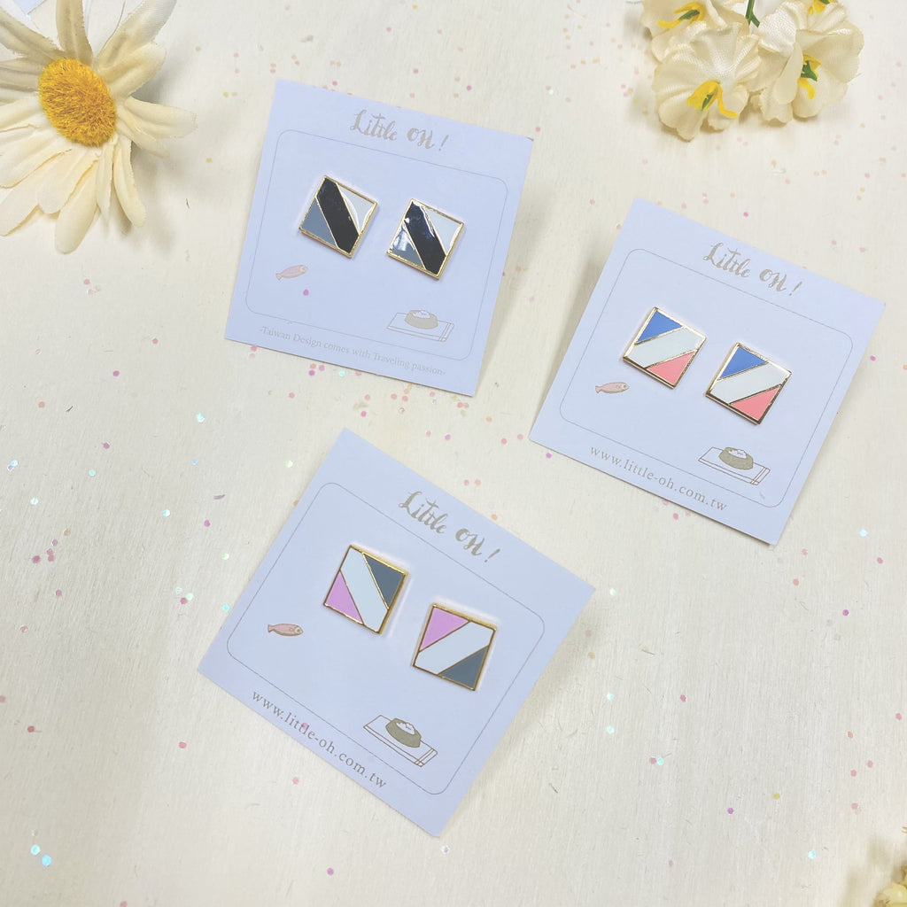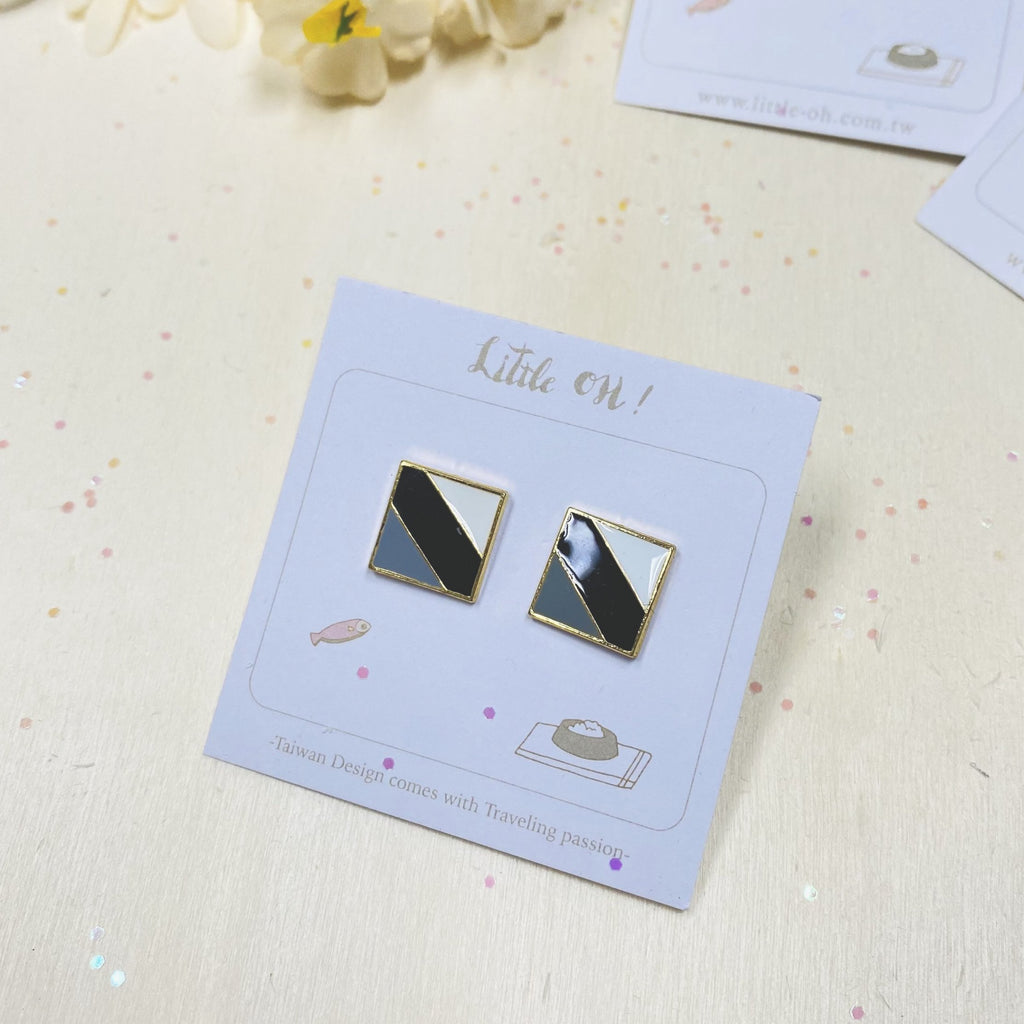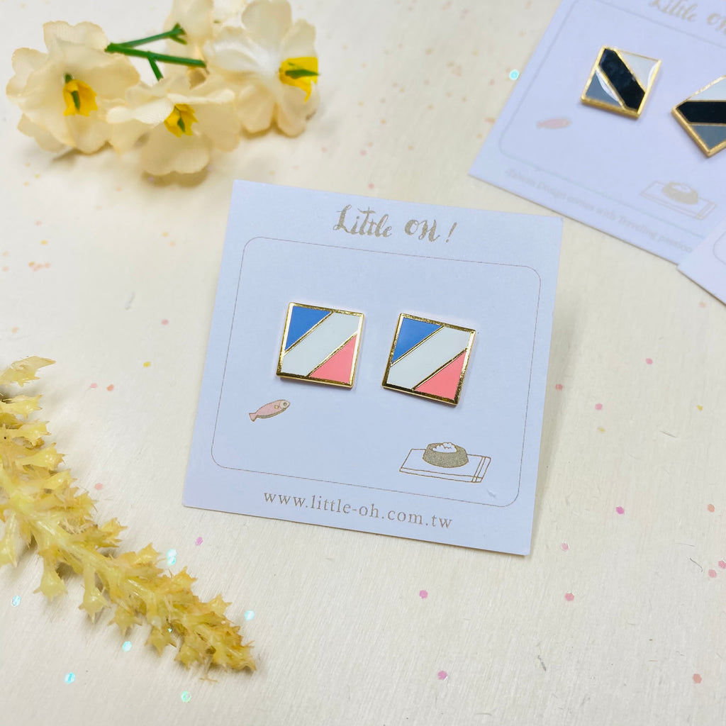 Exclusively designed by Little OH! A limited collection of Geo. As with all Little Oh! products, pieces from the Geos' Collection are created from hand cut patterns, colored with top quality enamel with all brass pieces coated in 24K gold.