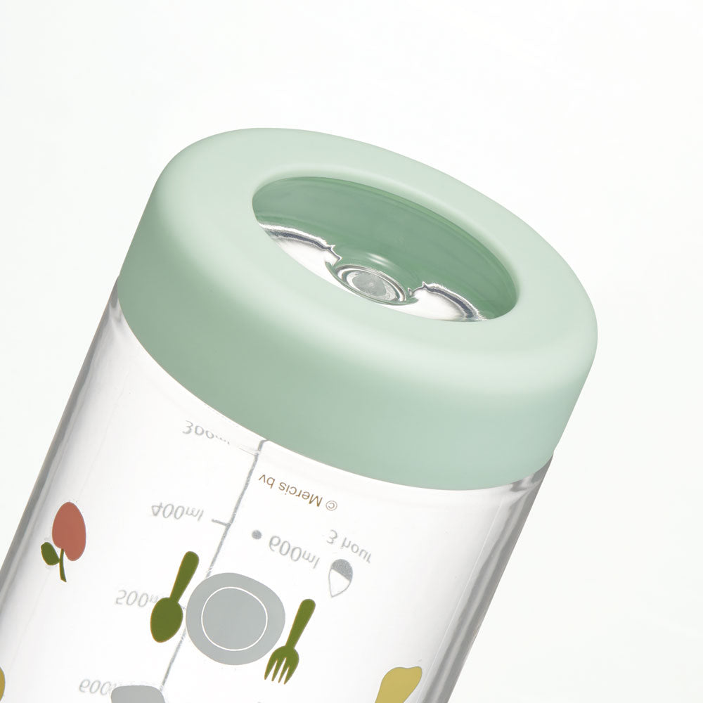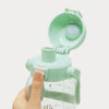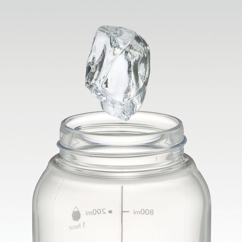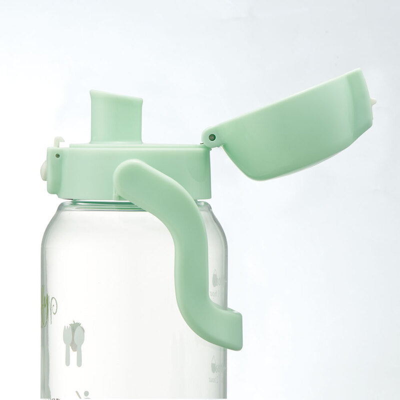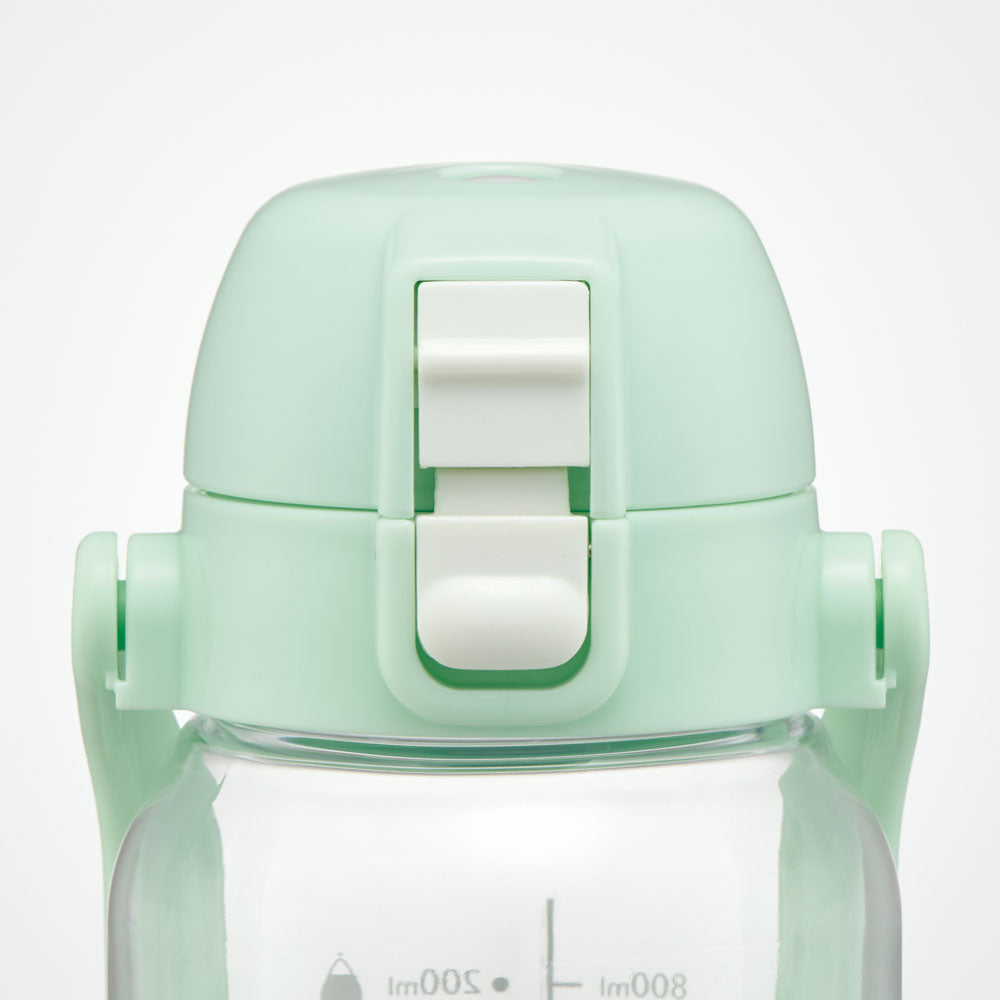 - Clear one touch bottle that can be unlocked and sipped with a single push.
