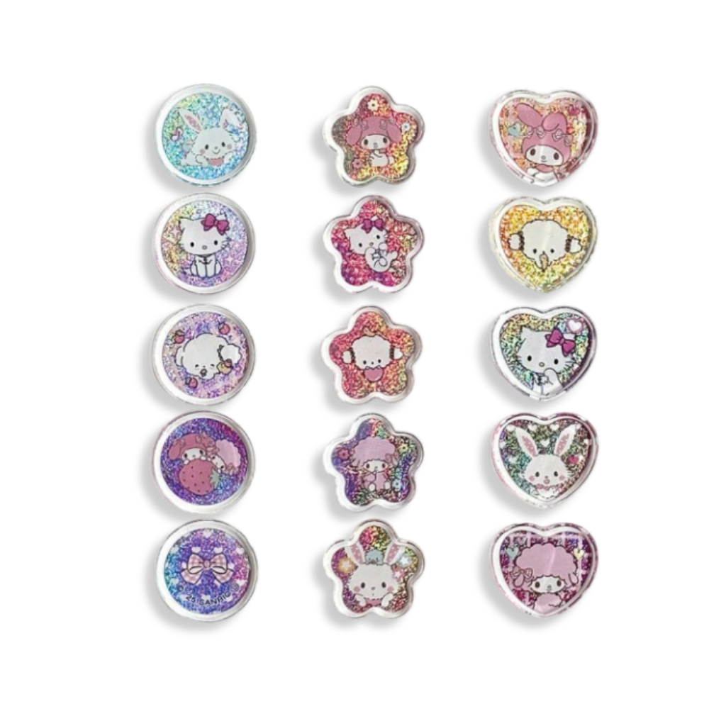 • 15 stickers mixed among 5 Sanrio girl characters.